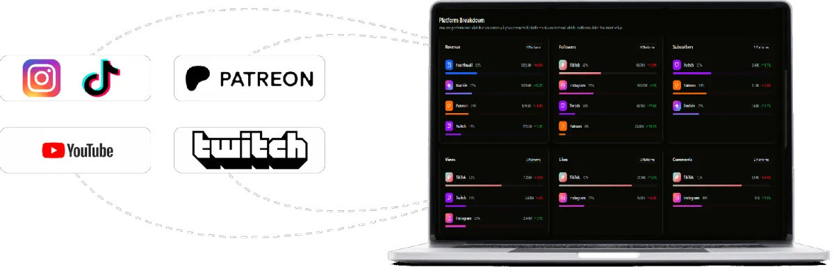 Our command center integrates data from most popular creator revenue-generating platforms